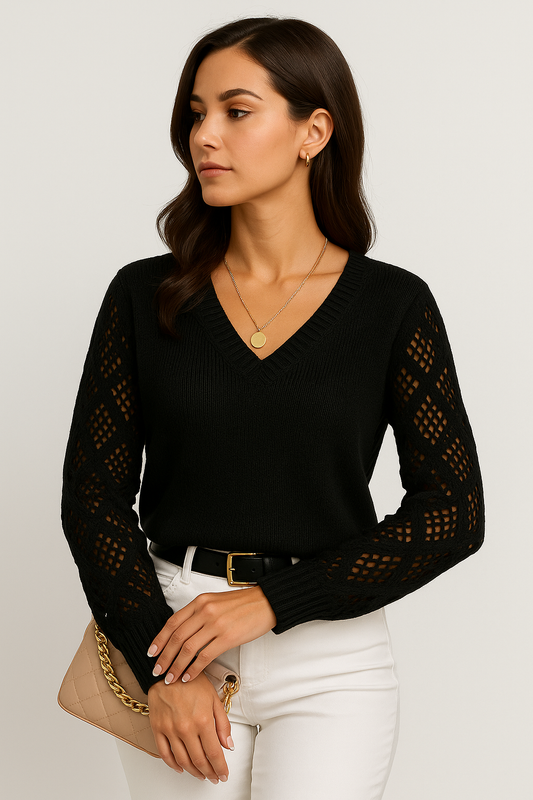 Fien | Stijlvolle en Comfortabele Kantenmouwen Trui met V-hals voor Dames