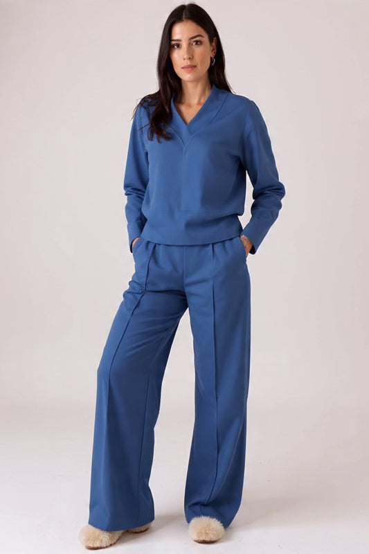 Amelle | Dames Loungewear Set met Wijde Pijpen en V-Hals Top